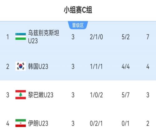 U23亚洲杯C组:乌兹别克斯坦第1、韩国第2晋级,伊朗0进球0胜垫底